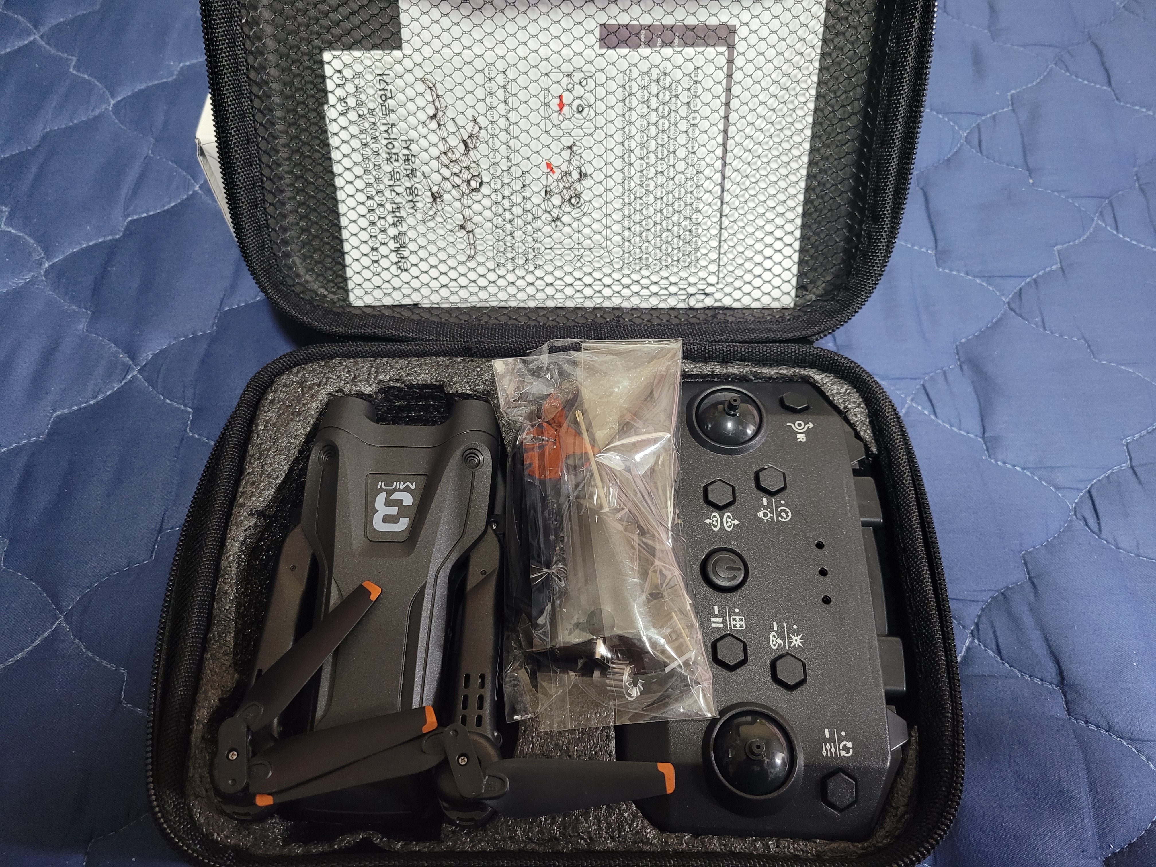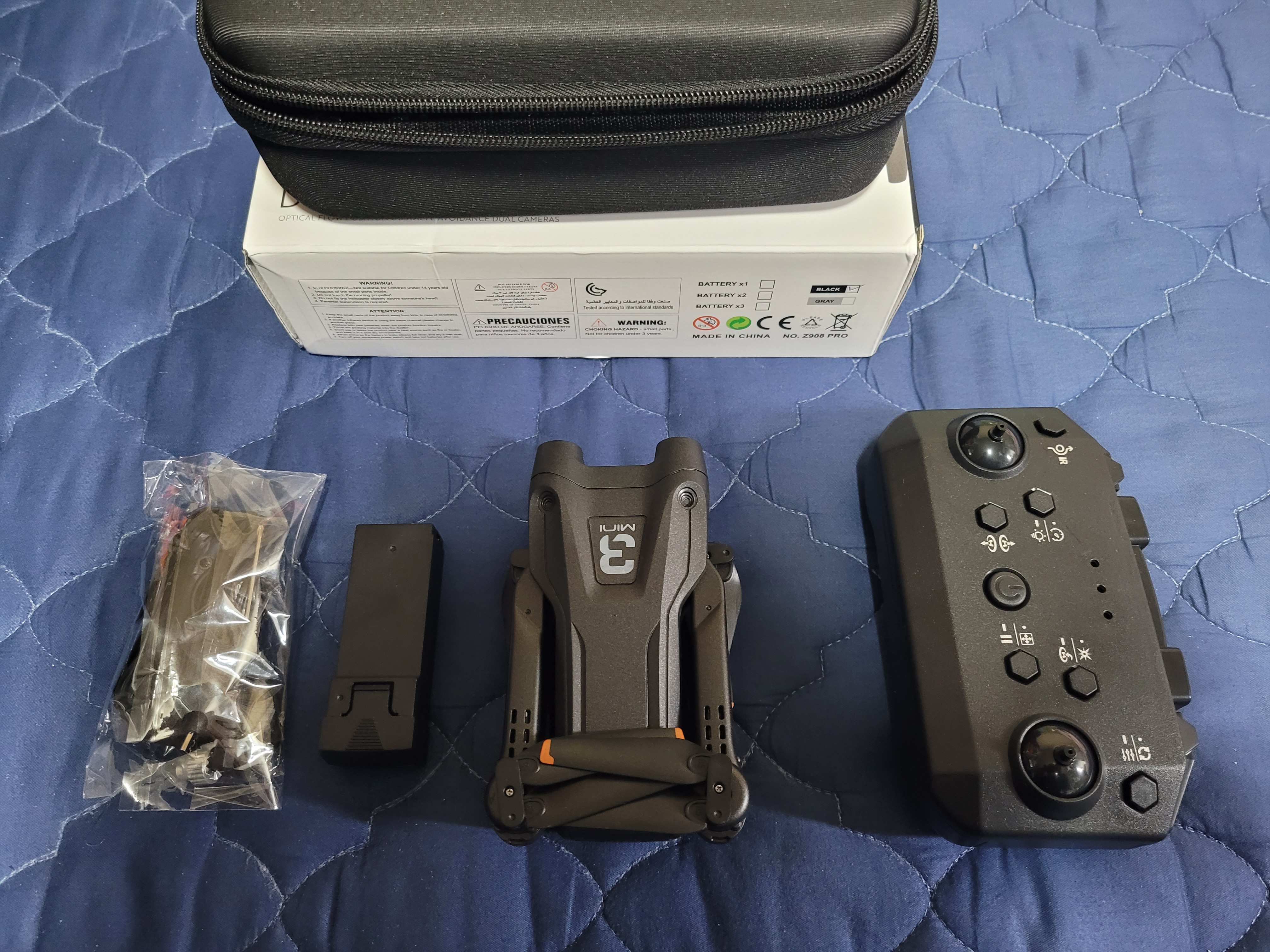 내용물을 꺼내면 각종 부품과 추가 구입한 배터리, 드론 본체, 무선 조종기가 들어 있습니다.