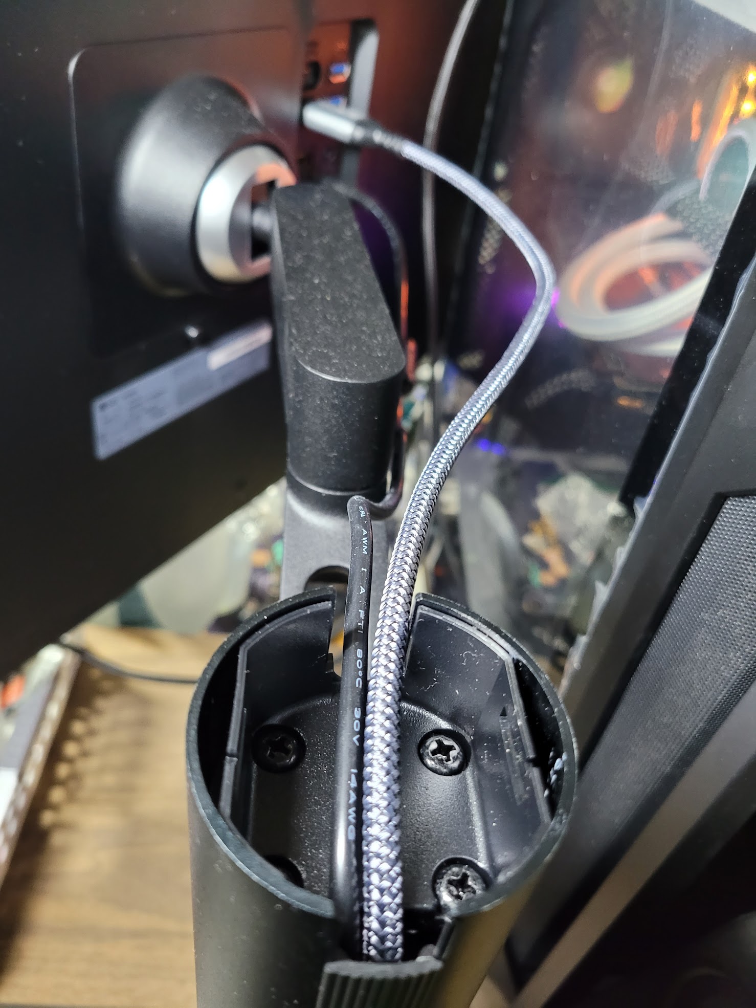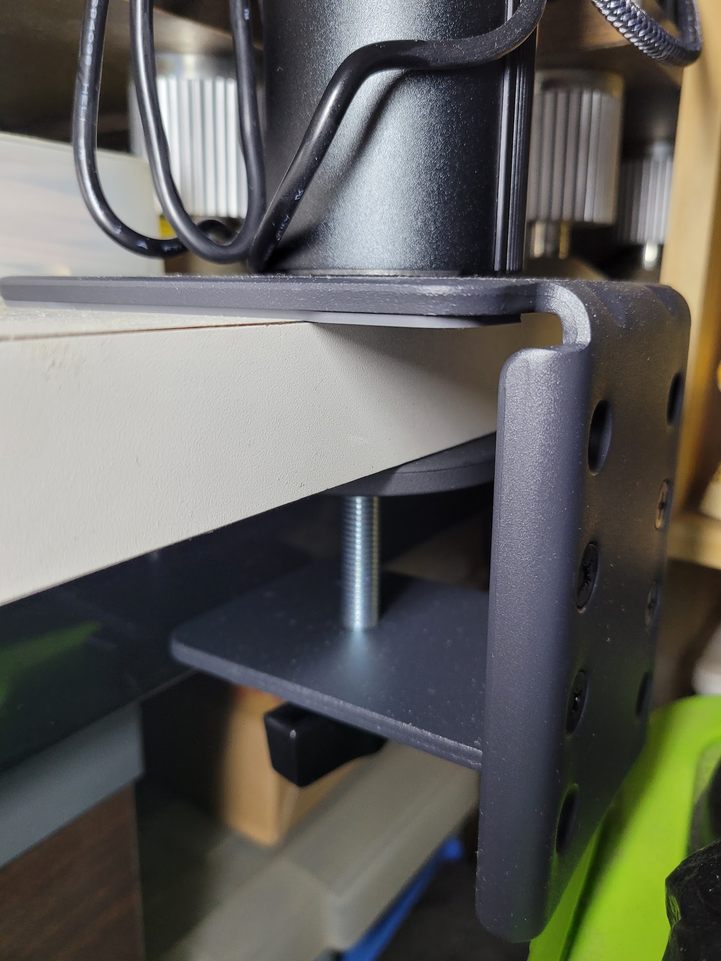 정면에는 책상 선반이 있기 때문에 측면에 암을 장착했습니다.