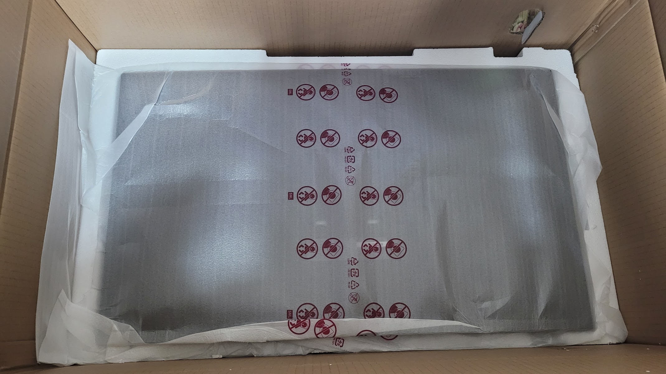 박스 자체는 이전에 구입 했던 크로스오버 32" 와 큰 차이가 없었는데 두께가 2배쯤 두껍더군요.