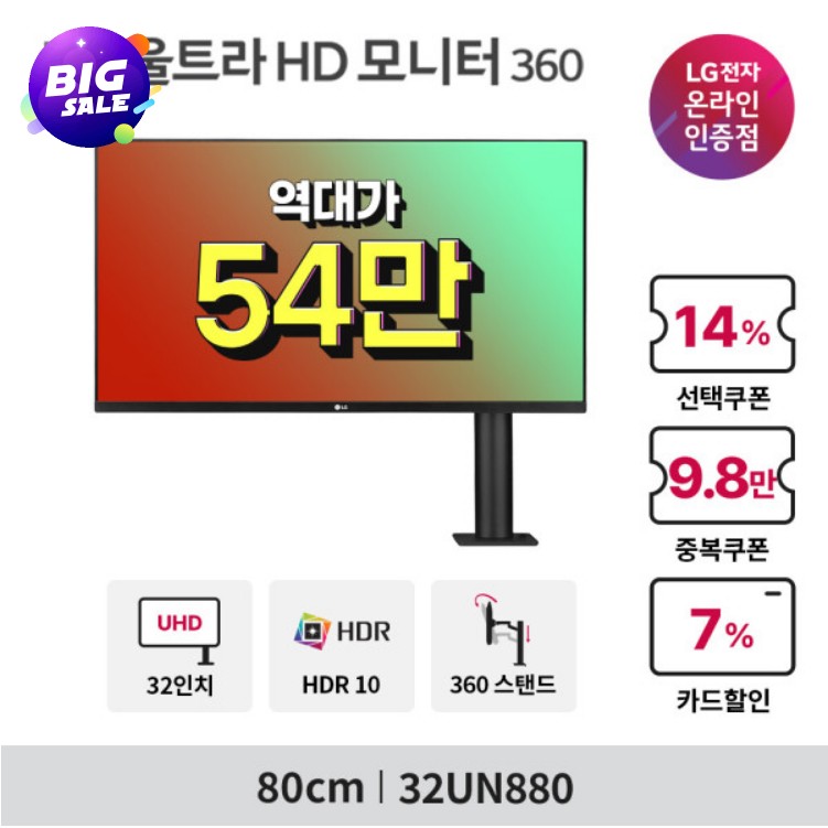 LG 전자의 32" UHD 4K 모니터인 32NU880 입니다.