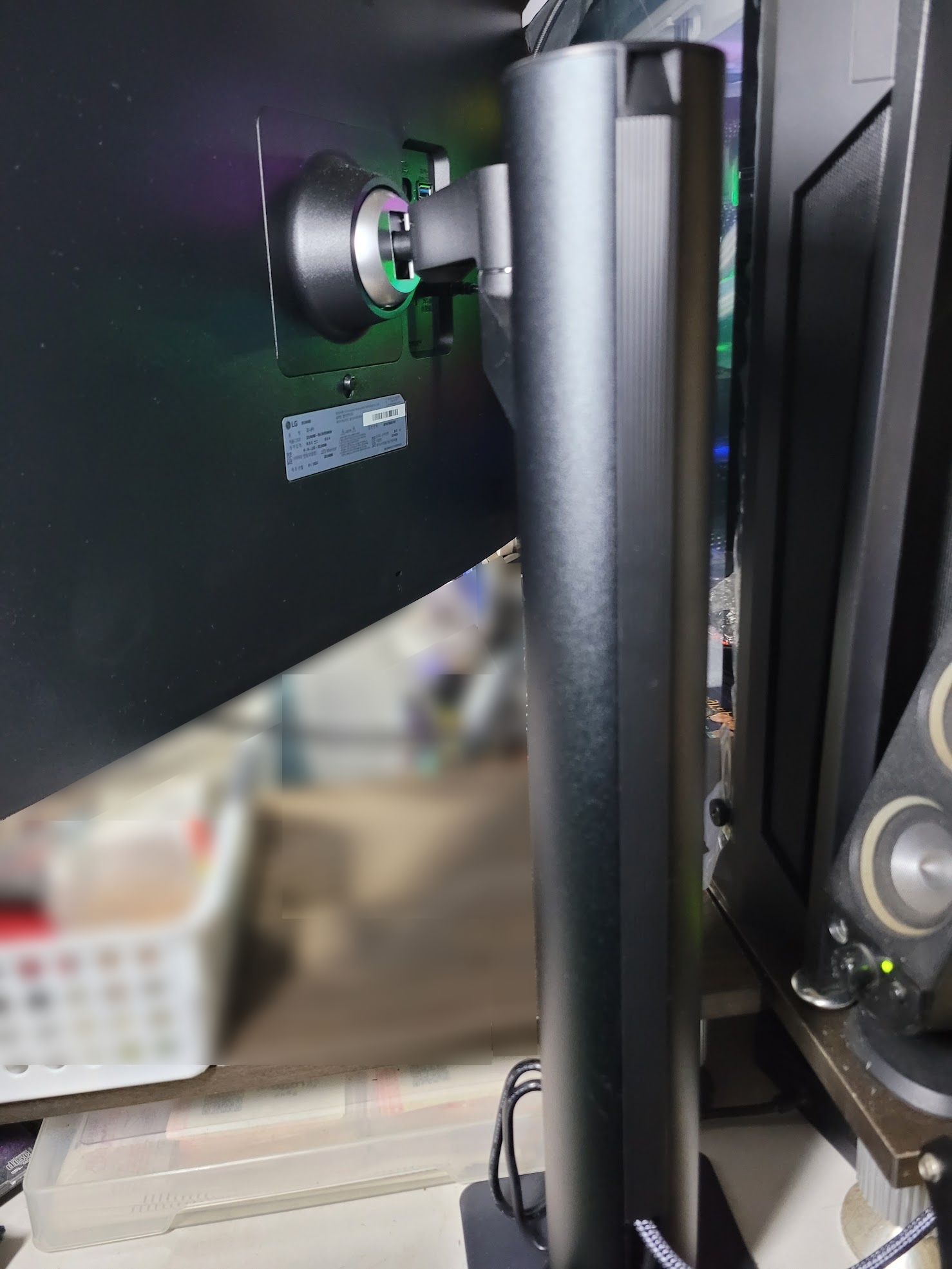 모니터 암의 경우 장착할때는 못 미더운 느낌이었지만 모니터를 장착하는 순간 빛을 발합니다.