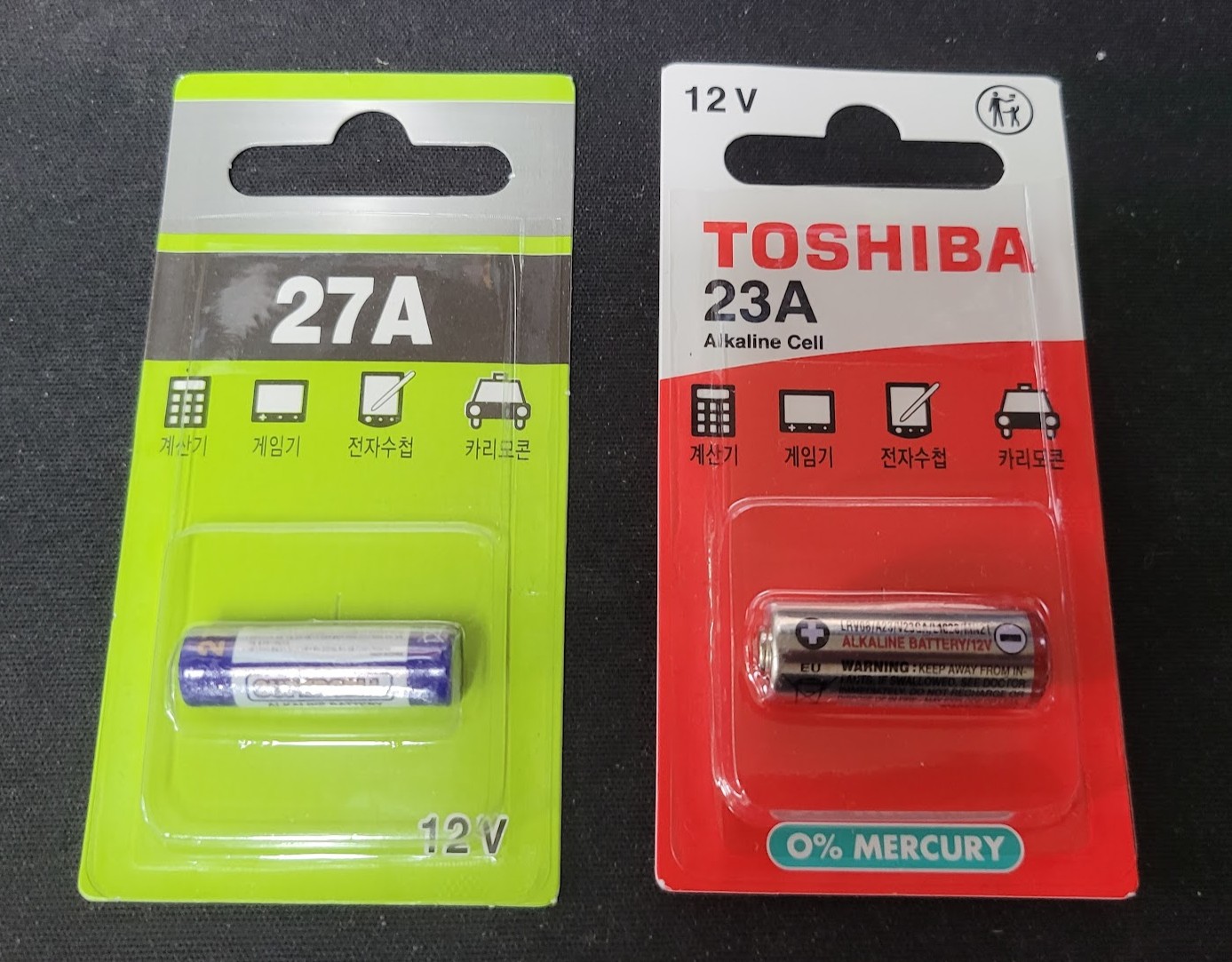 스위치에는 27A 12V 건전지가 들어가고 리모콘에는 23A 12V 건전지가 들어간다고 하는군요.